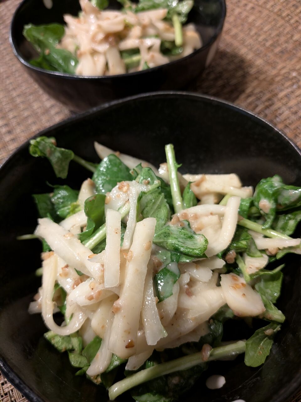キクイモとルッコラの胡麻サラダ。