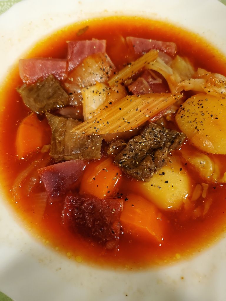 さつまいも、れんこん、にんじんを豚肉と一緒に甘辛く煮つけました。
