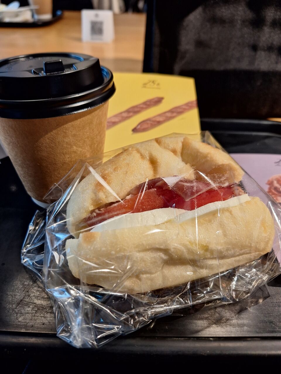 もっちりしたパンにトマトとモツァレラチーズにサンドイッチはやっぱり美味。