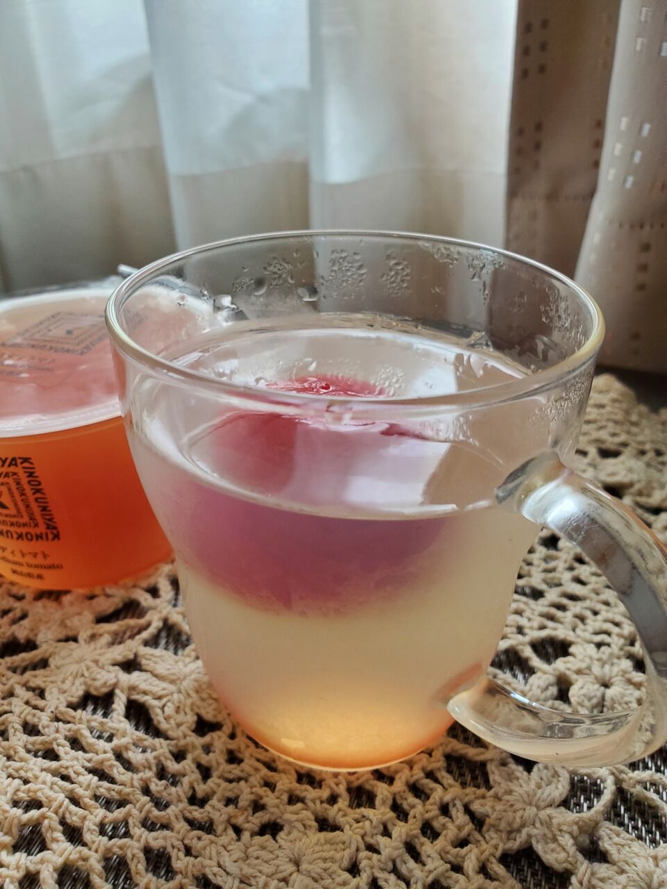 見た目は梅干しのサワーみたいですが、トマトまるごとゼリーです。