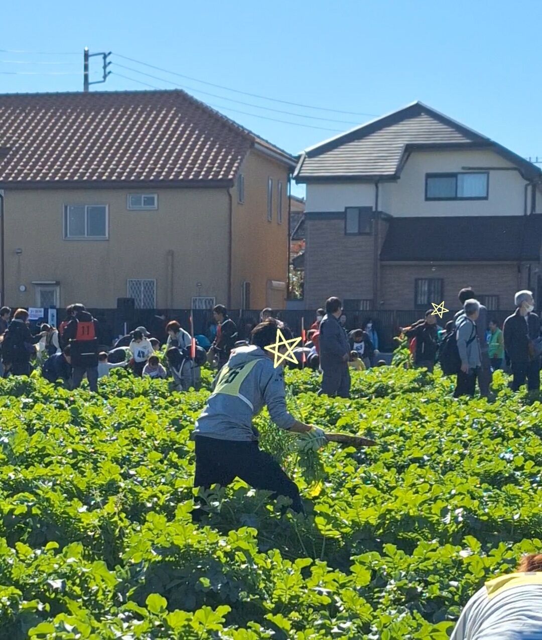 広大な大根畑のにすごい人、人、たくさんの参加者が大集合。