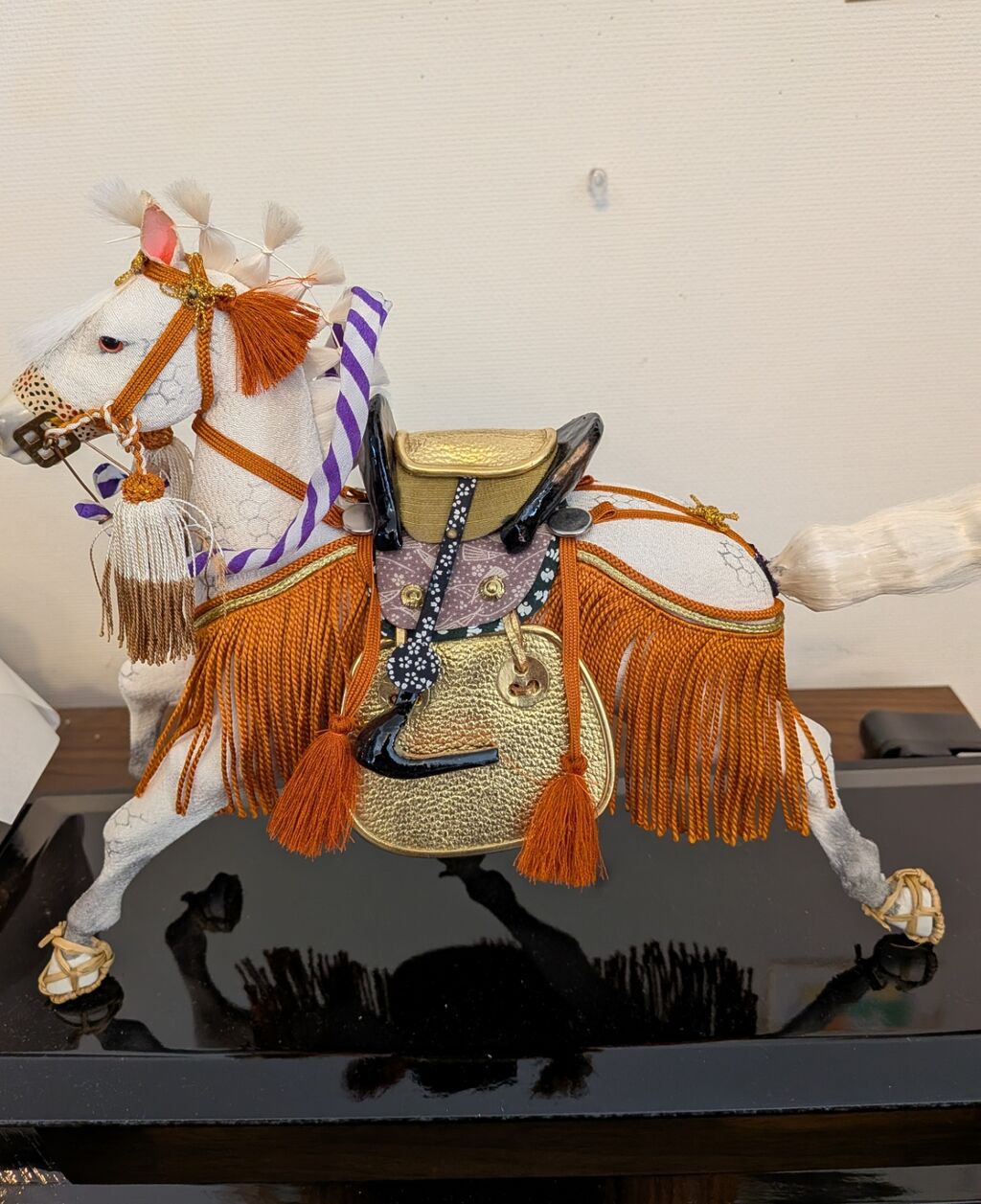 午年なので長男が生まれた時に祖父からいただいた白馬を飾りました。