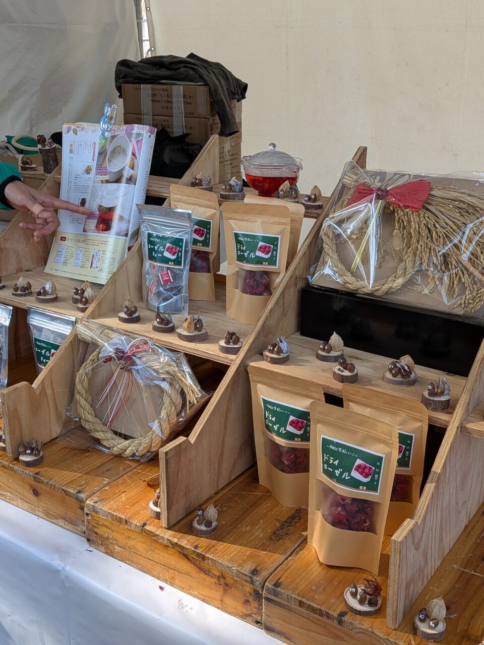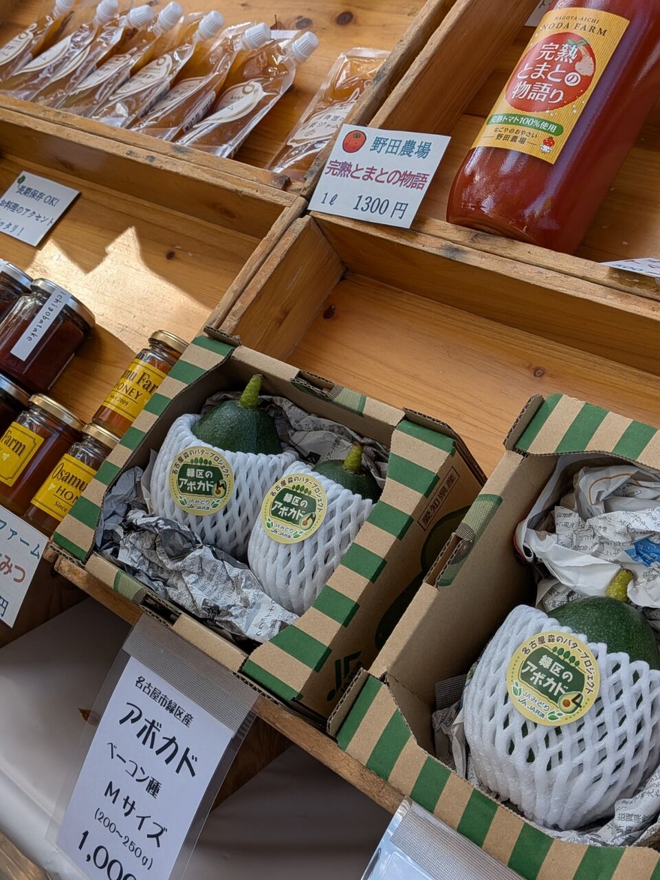 京芋、原木しいたけ、信州みそ、梨のジャム、狭山茶の和紅茶、スイカとすだちのグミ
