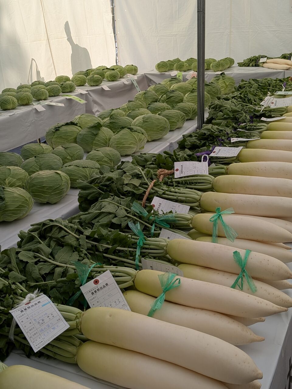 地元の農家さんの自慢の野菜の品評会もやっています。