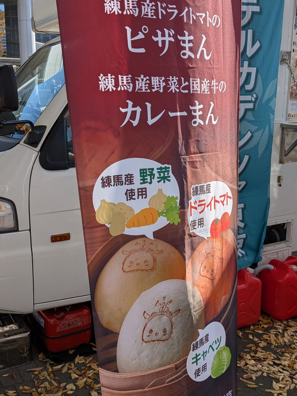 練馬産キャベツの回鍋肉まんじゅうと、練馬産ドライトマトのピザまんを購入。