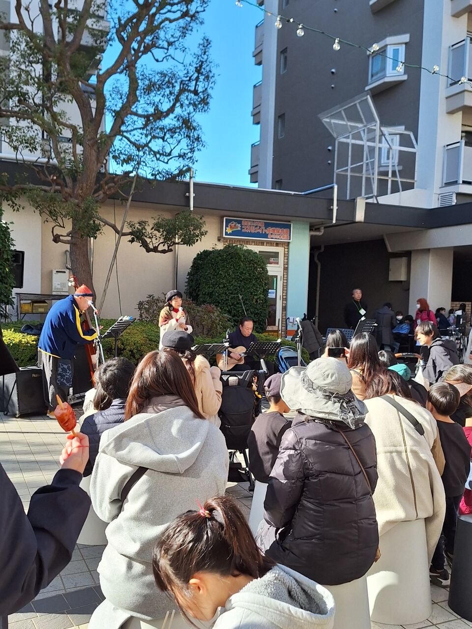 3人組のバンドがいい感じの音でクリスマスソングを演奏しています。